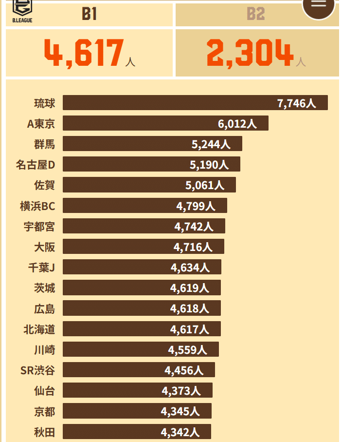 さて、今回のテーマはBリーグ平均観戦者数が多いチームを紹介。